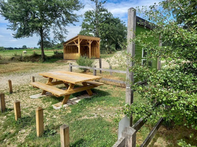 Aussi connu par les amateurs de pêche, les tables de pique-nique ont l’avantage d’être à l’abri, pratique en cas de pluie ! Sur place, pêche, départ de randonnée pédestre, toilettes. Ne manquez pas, de mai à octobre, de visiter le jardin du Manoir de la Boisnerie situé à 500 mètres.