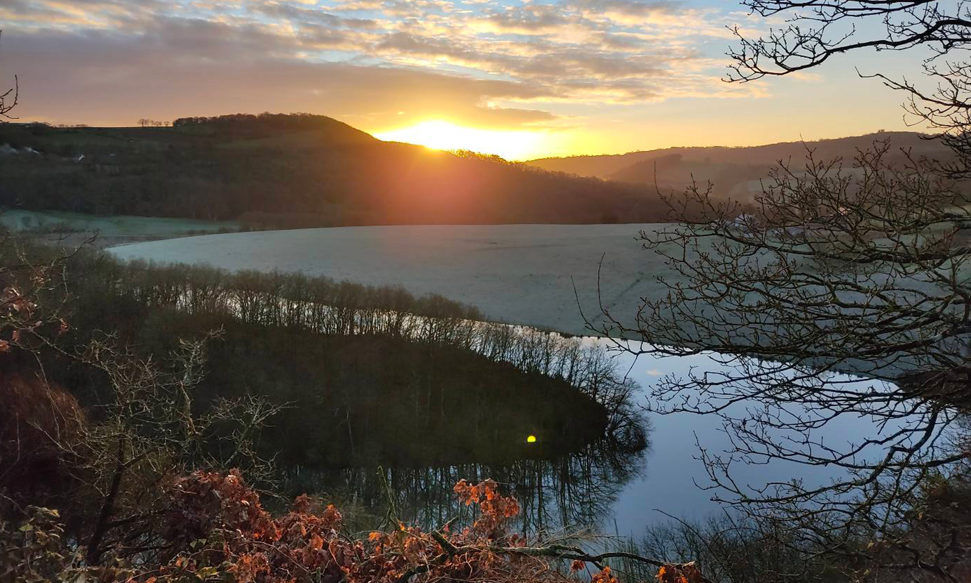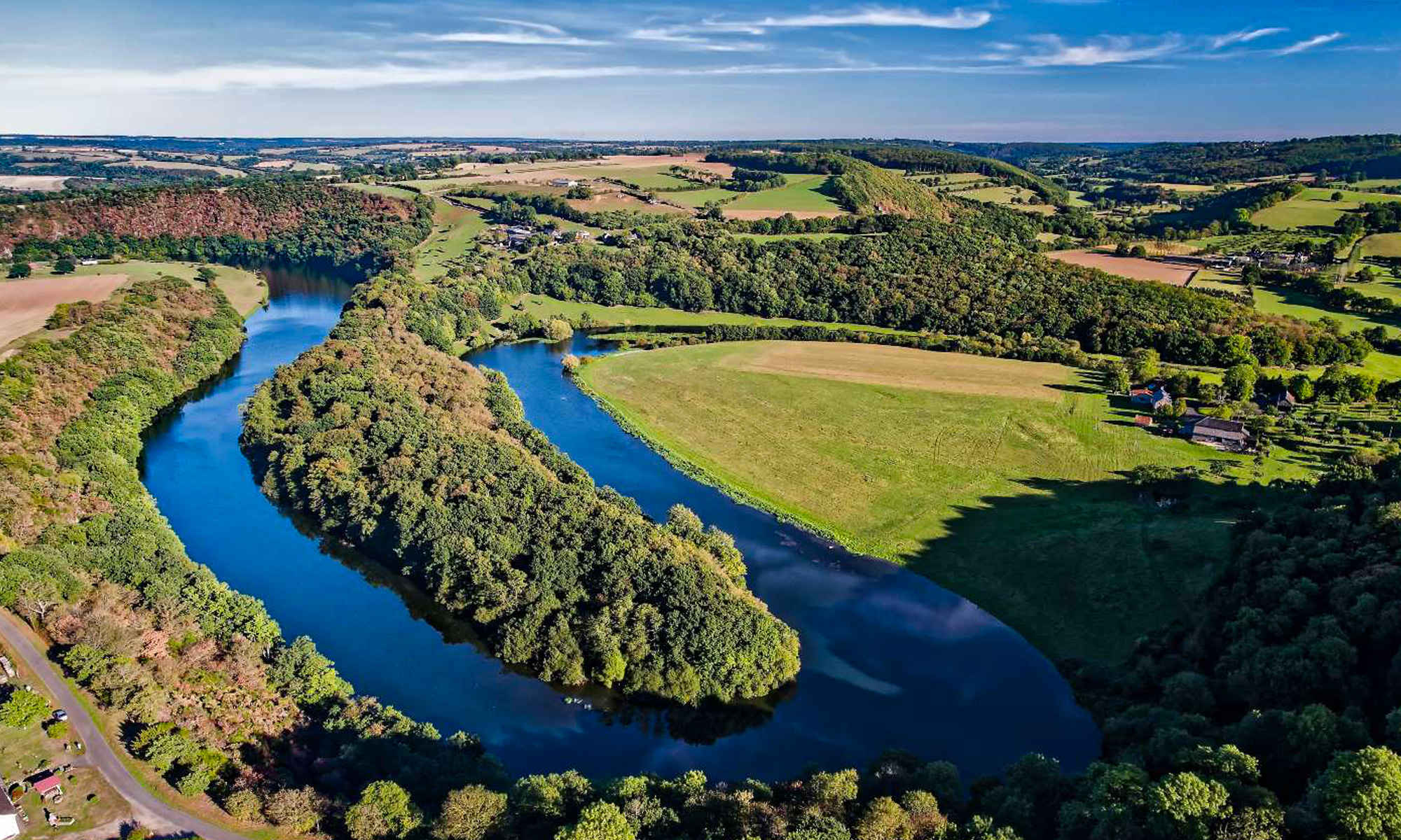 Vue sur le méandre de l’Orne, digne des Ardennes et passage près de la charmante église de la Plisse.