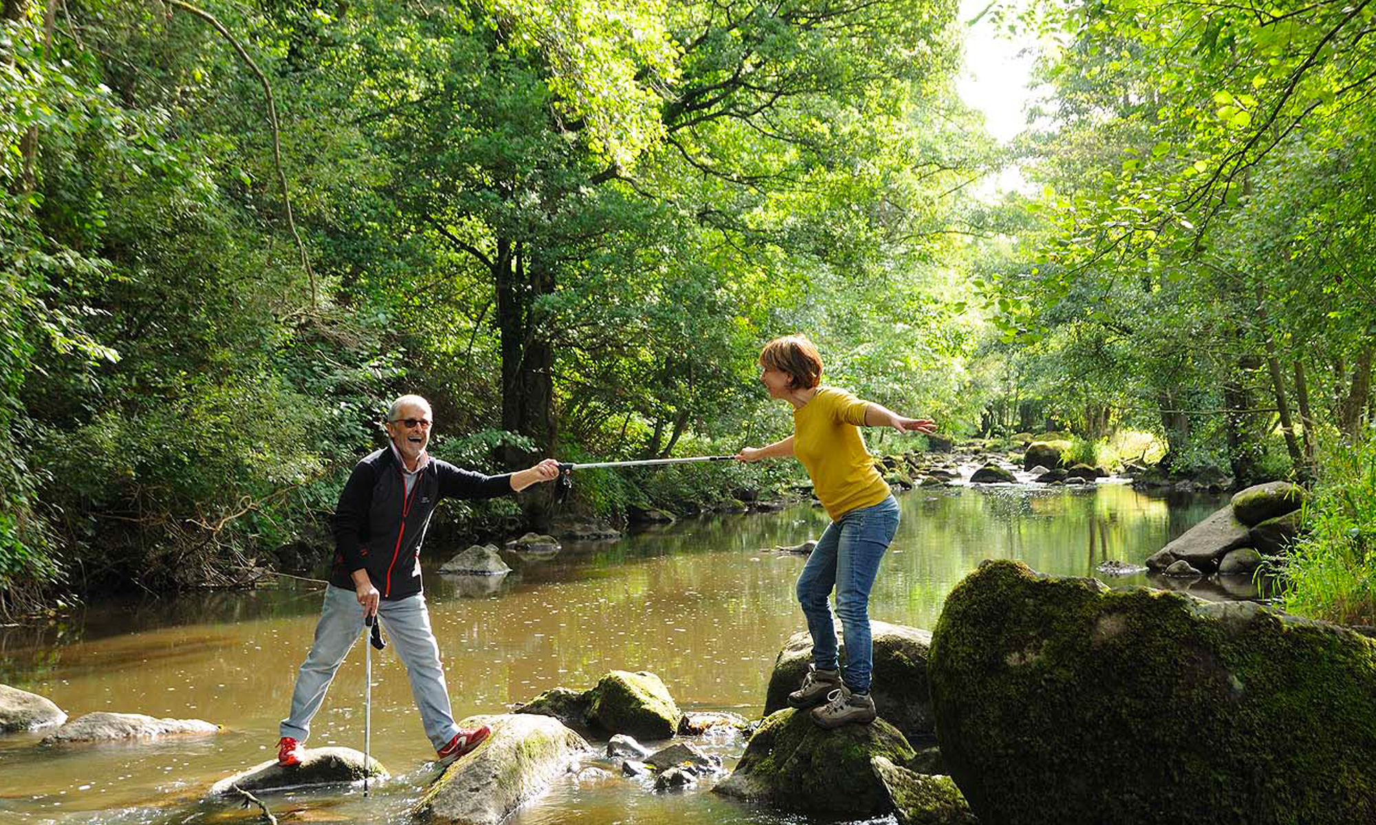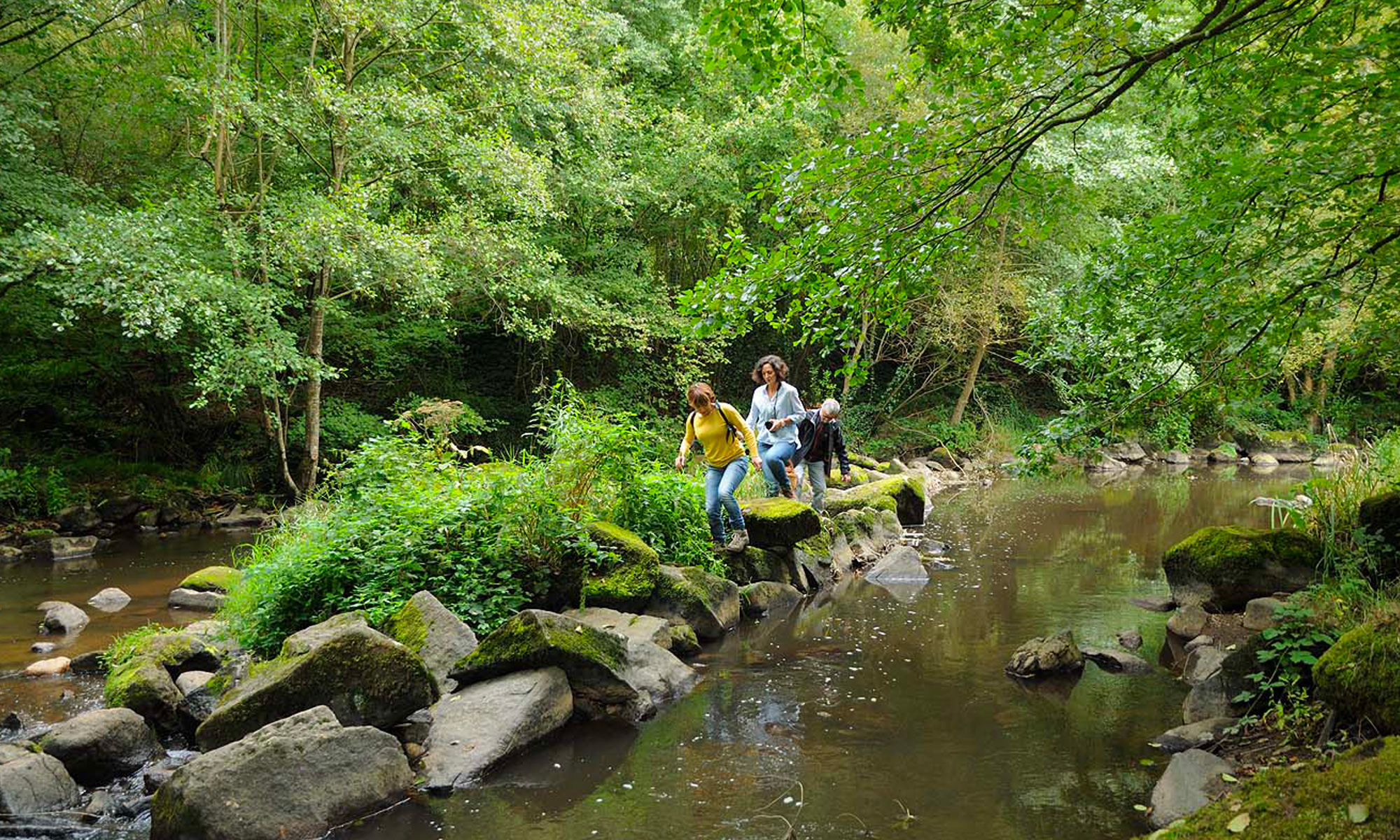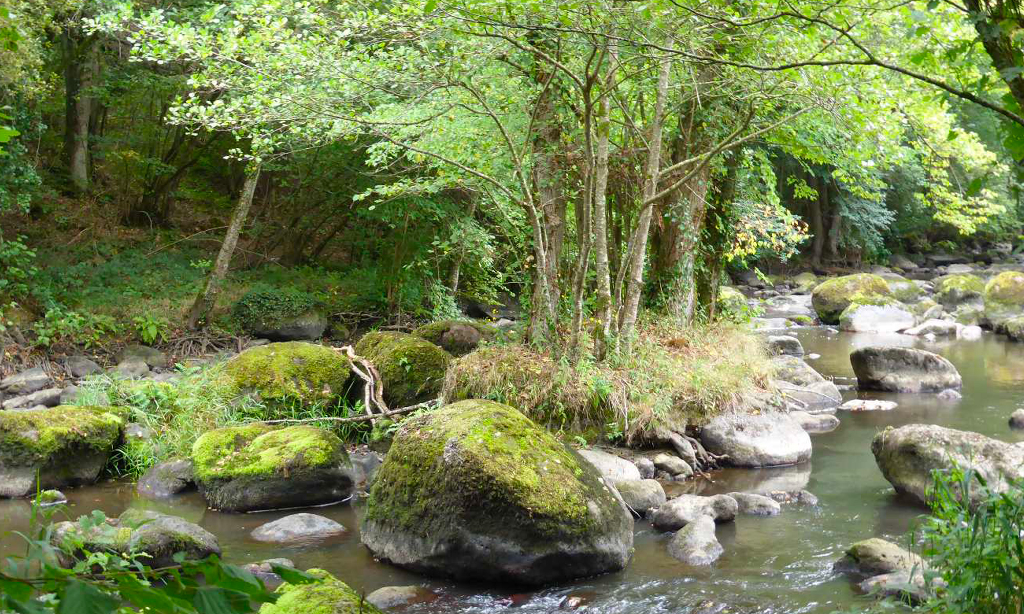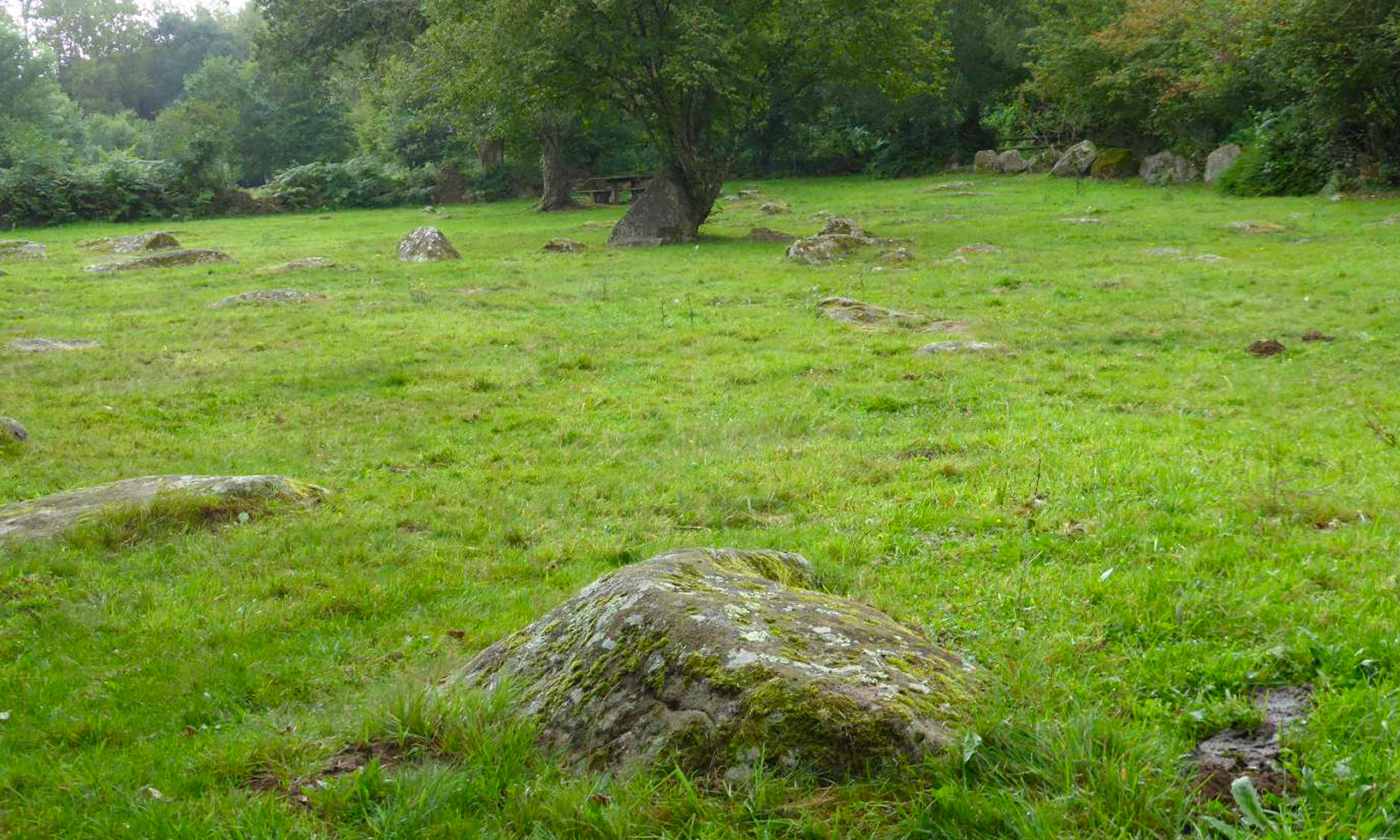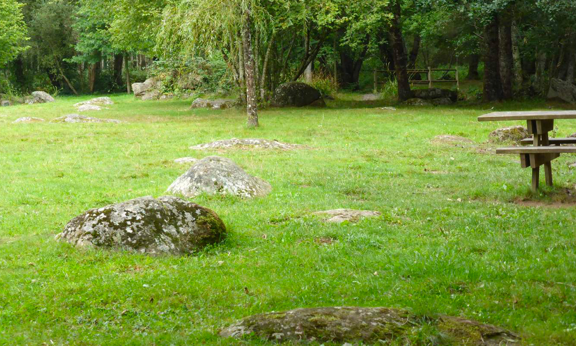 Vous passerez par le chant des cailloux, le site de pique-nique par excellence ; le site est parsemé de blocs de granite au bord de la Rouvre.