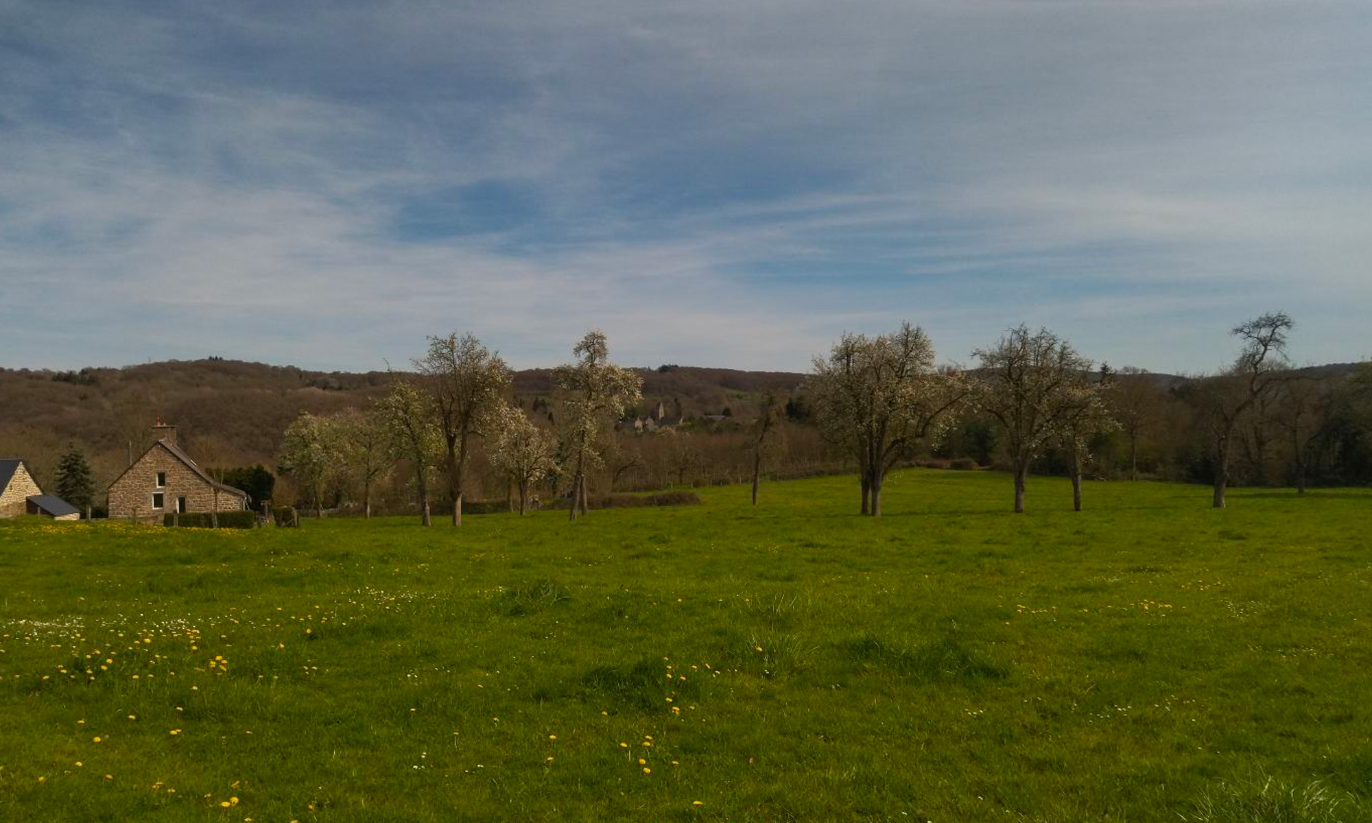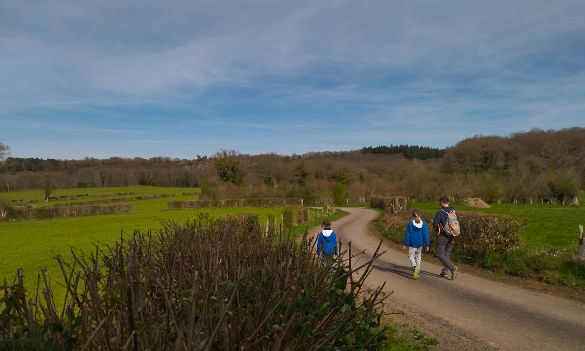 Parcours jalonné de puits, vue sur la belle église de Bréel et sur le site de la Roche d’Oëtre vu de face ce qui est plutôt rare !