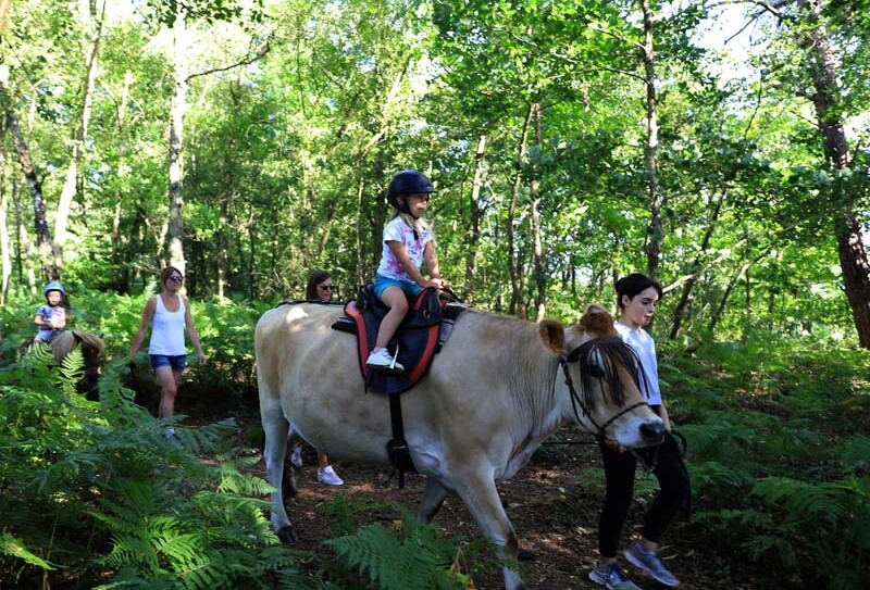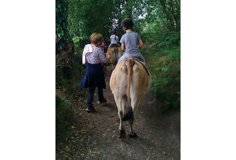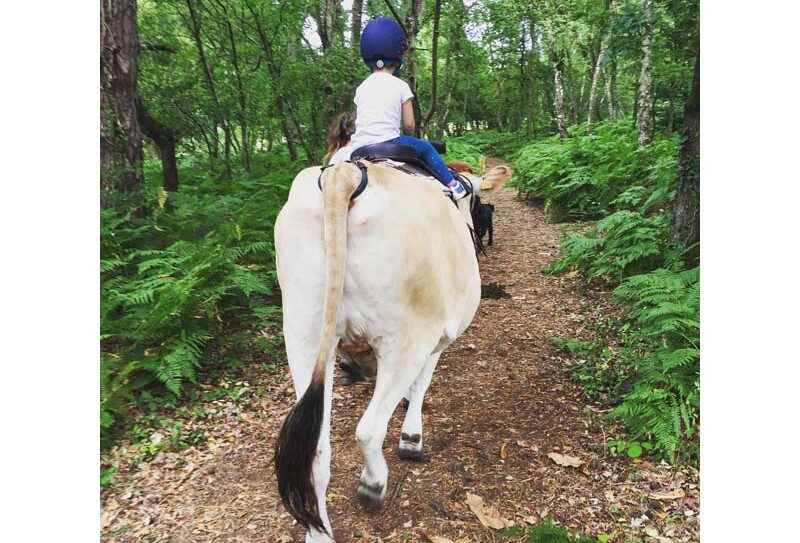 Balade nature à vache et poney ou randonnée découverte à vache. Annie ATE et BPJEPS Tourisme Equestre vous guide et vous emmène sur les sentiers de randonnée de la Forêt-Auvray. Les parents meneurs accompagnent les petits cavaliers et s’initient ensemble le temps d’une balade.