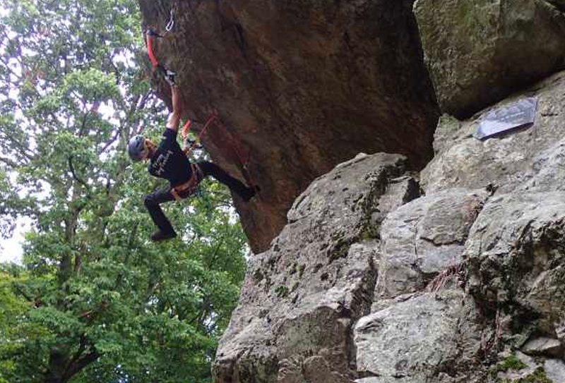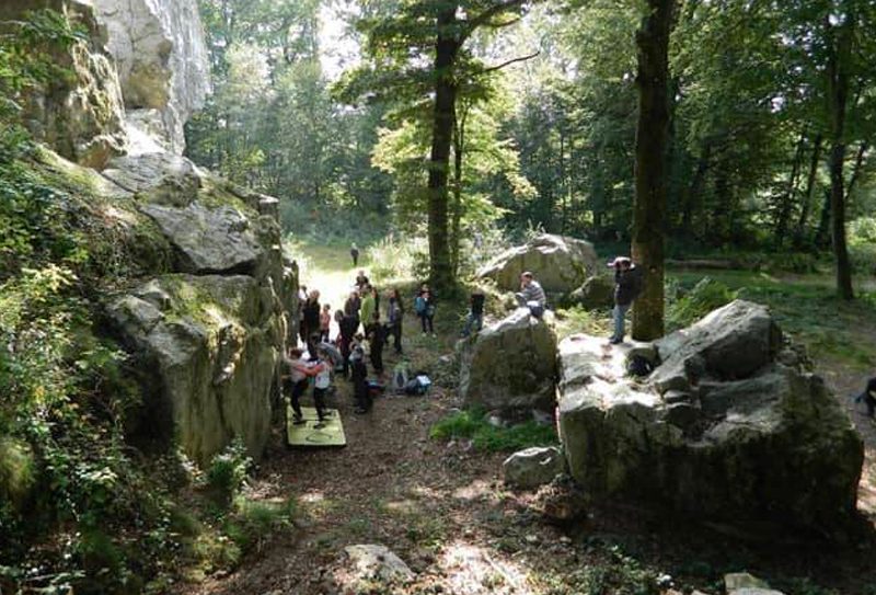 Le site d’escalade dans la forêt de Halouze est surtout reconnu pour le bloc* (avec une cotation allant de 4 à 7c), ce qui en fait un site particulier dans la région par rapport aux autres sites centrés sur l’escalade dite de difficulté, c’est-à-dire avec corde et baudrier.