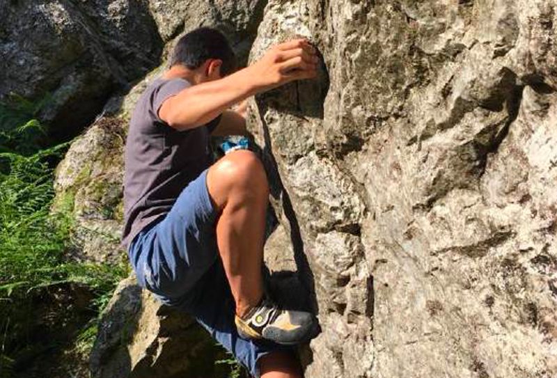 *grimpe sans corde ni baudrier ; seulement un ou plusieurs crashpad pour amortir les chutes.