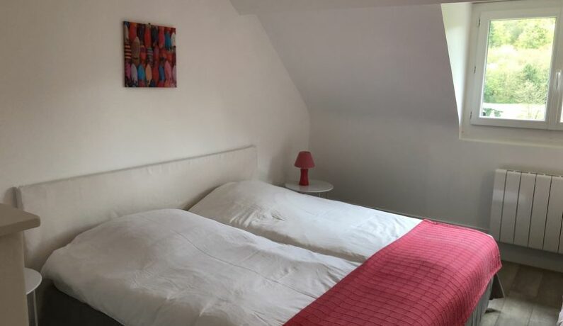 WC on the landing. On the 2nd floor : Bedroom with 3 beds. Small bedroom with pull-out beds (2×90). Shower room/wc/towel dryer