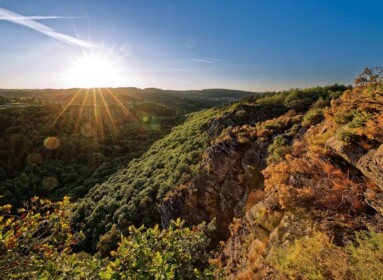 Its valley is incredibly picturesque and is one of the highlights of the Suisse Normande region. Whilst the river no longer affects the immense valley it carved out, the result of its erosion is the many rocky outcrops such as the 118-metre sheer drop of the Roche d’Oëtre. Deep gorges sustain the mountainous character of this part of Normandy. Where the forest gives way to hedgerows, dry stone walls and meadows strewn with granite rocks, the river has brighter sections.
