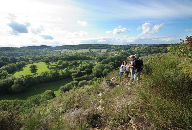 Il faut dire que la rivière a dû faire ici avec la présence d’une roche aussi ancienne (+ de 550 millions d’années) que résistante : la cornéenne. Le Rocher des gardes est un autre belvédère remarquable, bien moins connu ou du moins fréquenté que la Roche d’Oëtre. Il faut dire qu’il ne bénéficie pas d’un accès direct. Il faut faire quelques efforts à pied (et ça monte !) mais on vous l’assure, vous ne serez pas déçu du spectacle.