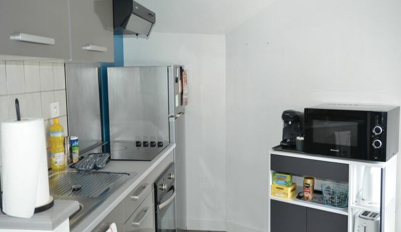 Cuisine équipée : Plaque de cuisson avec hotte, réfrigérateur / congélateur, bouilloire, machine à café, grille-pain, four électrique, four à micro-ondes.