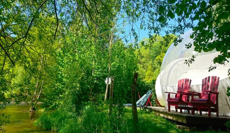 Le Camping de la Rouvre vous propose de vous évader au coeur de la Suisse Normande et de profiter d’une nuit exceptionnelle à la belle étoile en pleine nature, au bord de la rivière dans une bulle transparente. Vous dormirez dans un véritable nid douillet bercé par le murmure de la Rouvre, dans un espace privé.