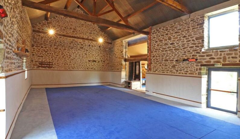 Ensemble d’hébergements sur 4 bâtiments indépendants : – Le Grand Gite avec 4 chambres et 4 salles d’eau pour 10 personnes + 3 lits d’appoint. – Le Petit Gite avec 1 chambre et 1 salle d’eau pour 2 personnes + 1 convertible en appoint. – Le Pavillon Japonais avec 1 chambre pour 4 personnes. – Les Loges avec 1 suite de 2 chambres pour 4 personnes, 1 dortoir pour 8 personnes, 1 chambre pour 2 personnes et 3 salles d’eau. Salle de réception dans le Théâtre de 78 m² avec parquet – salon – cuisine professionnelle Jardin non clos et arboré avec pièce d’eau à proximité (étang de 2500 m2 non sécurisé). Salle commune avec buanderie, salle de sport, babyfoot et sauna 2 personnes. Location d’ânes bâtés, VTT et vélos électriques sur place. Prise renforcée pour la recharge de véhicule électrique sur place. Possibilité de louer pour 24 personnes en louant les structures G2064+G825