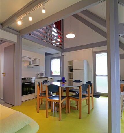 Dans un complexe touristique de 65 hectares. Gîte N°2 indépendant à ossature bois. Rez de chaussée : Séjour avec coin cuisine (four, micro-ondes), coin salon (clic-clac 2 personnes), 1 chambre (1 lit de 2 personnes), salle d’eau. WC indépendant. Étage : Mezzanine (3 lits 1 personne). Terrain et plan d’eau non clos. Chauffage électrique. Réduction pour 2 ou 3 semaines consécutives / PRIX POUR 3 SEMAINES : 684€ en basse saison, 859€ en MS, 1152€ en juillet août UN SEUL CHIEN DE MOINS DE 10 kg ACCEPTE MAIS VACCINE (forfait semaine 15€) Électricité au delà de 8kw/jour non incluse.