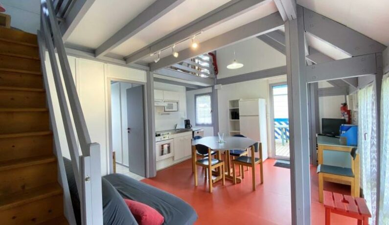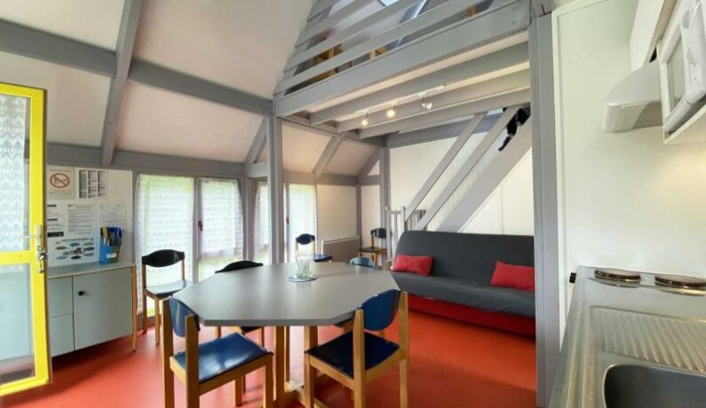 Dans un complexe touristique de 65 hectares. Gîte N°7 indépendant à ossature bois. Rez de chaussée : Séjour avec coin cuisine (four, micro-ondes), coin salon (clic-clac 2 personnes), 1 chambre (1 lit de 2 personnes), salle d’eau. WC indépendant. Étage : Mezzanine (3 lits 1 personne). Terrain et plan d’eau non clos. Chauffage électrique. Réduction pour 2 ou 3 semaines consécutives : PRIX POUR 3 SEMAINES : 684€ en basse saison, 859€ en MS, 1152€ en juillet août UN SEUL CHIEN DE MOINS DE 10 kg ACCEPTE MAIS VACCINE (forfait 15€ par semaine) Électricité au delà de 8kw/jour non incluse