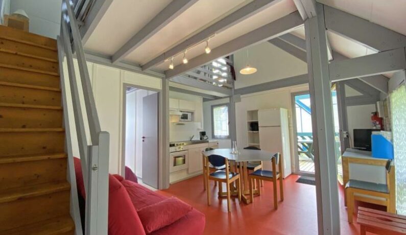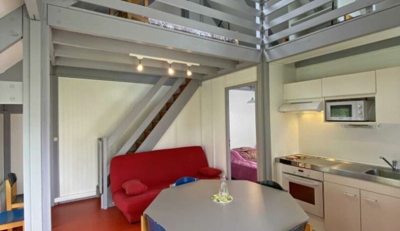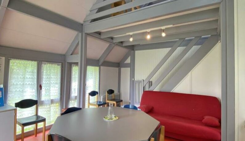 Dans un complexe touristique de 65 hectares. Gîte N°6 indépendant à ossature bois. Rez de chaussée : Séjour avec coin cuisine (four, micro-ondes), coin salon (clic-clac 2 personnes), 1 chambre (1 lit de 2 personnes), salle d’eau. WC indépendant. Étage : Mezzanine (3 lits 1 personne). Terrain et plan d’eau non clos. Chauffage électrique. Réduction pour 2 ou 3 semaines consécutives : PRIX POUR 3 SEMAINES : 684€ en basse saison, 859€ en MS, 1152€ en juillet août UN SEUL CHIEN DE MOINS DE 10 kg ACCEPTE MAIS VACCINE (forfait semaine 15€) Électricité au delà de 8kw/jour non incluse
