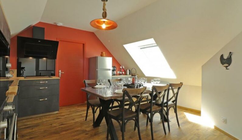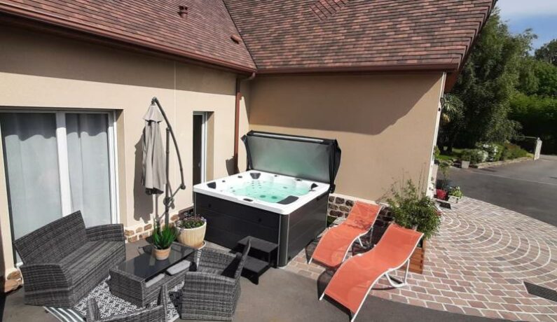 Maison récente avec chauffage électrique inclus, à l’étage avec entrée indépendante et mitoyenne avec le propriétaire : Séjour avec cuisine entièrement équipée donnant sur une terrasse surélevée dans la tour avec salon de jardin. Espace salon avec canapé convertible et TV. Chambre (lit fait 2 personnes 160 x 200 cm) avec salle d’eau privative (douche à l’italienne, lavabo et wc). Chambre (2 lits faits 1 personne 90 x 200 cm) avec salle d’eau privative (douche à l’italienne et lavabo). wc indépendant. Jardin fleuri et clos, avec SPA 6 personnes privatif ouvert d’avril à septembre. Jeux extérieurs pour enfants avec vélos et petit tracteur. Possibilité de louer en chambre individuelle de octobre à mars, nous consulter. Ménage obligatoire pour clientèle professionnelle