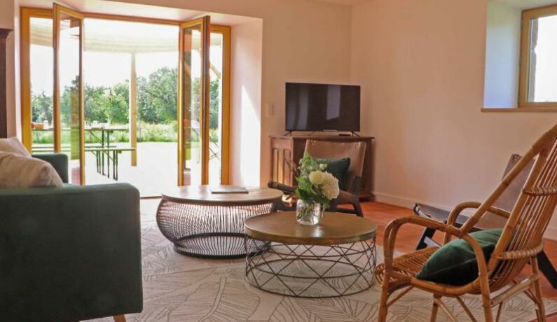 Maison de pays indépendante en formule tout inclus : Au rez-de-chaussée, un séjour/cuisine lumineux avec espace salon et poêle, une buanderie et un wc indépendant. Station Bluetooth. À l’étage, 2 chambres (2 lits faits 2 pers 180 cm séparables) avec salle d’eau et wc privatifs à chaque chambre, dont une avec wc séparés. Possibilité lit d’appoint 1 personne sur demande. La piscine couverte (9x5m, prof. max. 2m), chauffée toute l’année par géothermie, se situe à l’étage d’un bâtiment voisin. Vous y trouverez également un spa 3 à 5 places ainsi qu’une grande terrasse avec vue sur le bocage Normand. L’espace détente est ouvert tous les jours de 8h à 22h avec un créneau horaire à définir en fonction de l’autre gite sur place. Barbecue extérieur, terrain de pétanque, jeux pour enfants sont à votre disposition sur le domaine. Borne électrique pour voiture sur place.