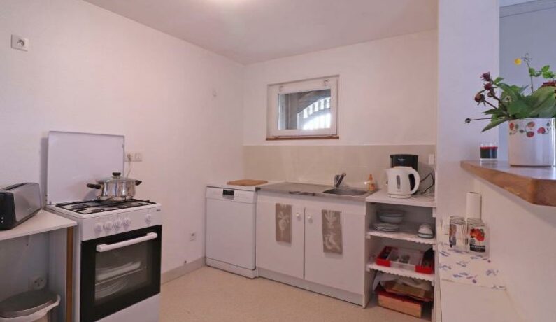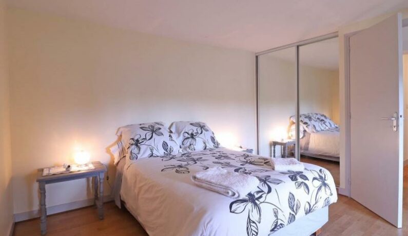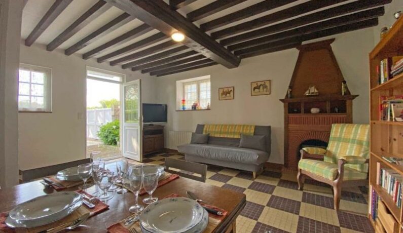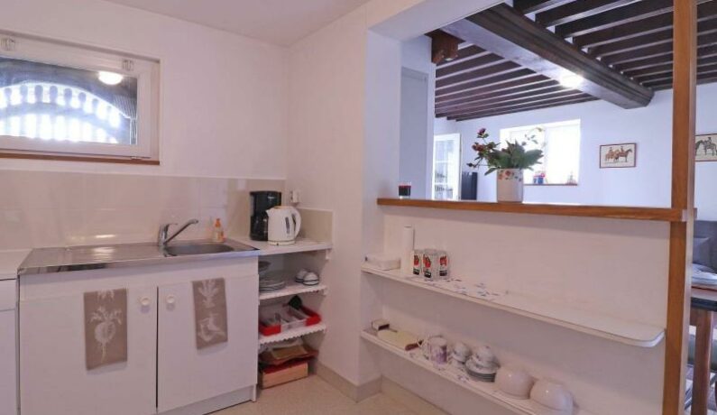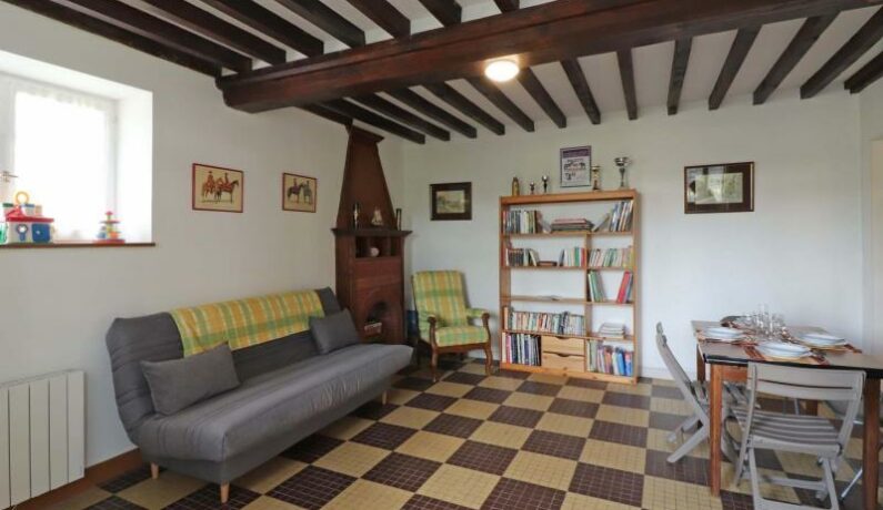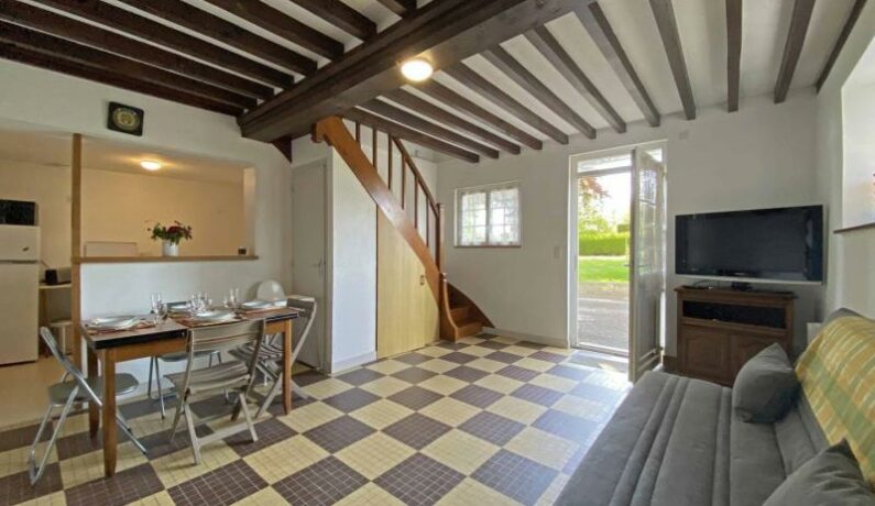 Dépendance d’une propriété en sortie de village, en formule tout inclus. – Rez de chaussée : séjour avec espace cuisine, TV. – Etage : chambre mansardée (2 lits faits 1 personne 90 x 190 cm), chambre (lit fait 2 personnes 140 x 190 cm, lit bébé, petit bureau), salle d’eau et wc séparés. Jardin arboré et clos avec portique et toboggan. Parking à l’intérieur. Lave-linge de la propriétaire mis à disposition pour les locataires. Chien accepté uniquement (pas de chat).