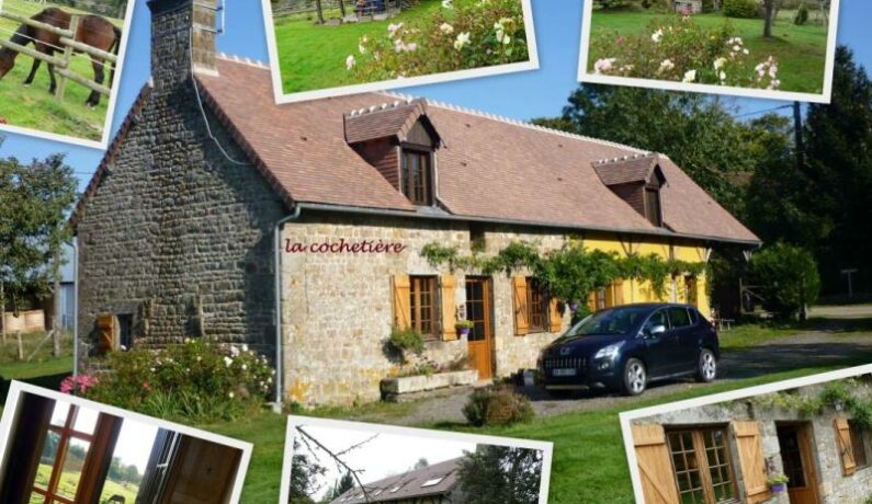 Maison typique dans un environnement calme et naturel. Natacha vous propose la visite de la ferme laitière situé à 60 m avec découverte de la traite. À proximité : randonnée dans le bois du Grais, station thermale de Bagnoles de l’Orne, cité médiévale de Domfront, château de Carrouges, etc.