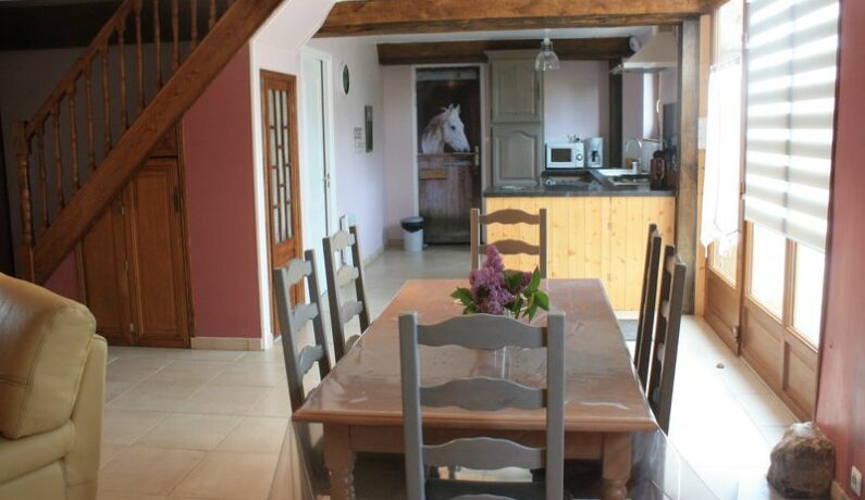 A 600 mètres de la voie verte Briouze-Bagnoles de l’Orne, à proximité du marais du Grand Hazé (site naturel remarquable) et en bordure de la Suisse Normande, calme et détente sont assurés dans notre petite propriété équestre. Nos amis cavaliers peuvent venir avec leur monture (5 € /cheval/ nuit en paddock).Chiens et chats sont acceptés gratuitement. Rez de chaussée : salon, séjour, cuisine ouverte, wc, salle d’eau, buanderie. Grand préau avec salon de jardin et barbecue. Etage : 1 chambre ( 1 lit 2 personnes, 1 lit bébé) – 1 chambre (3 lits 1 personne). Draps fournis, lits faits. Possibilité d’adjoindre une chambre supplémentaire accessible aux personnes handicapées avec salle d’eau et wc privatifs.