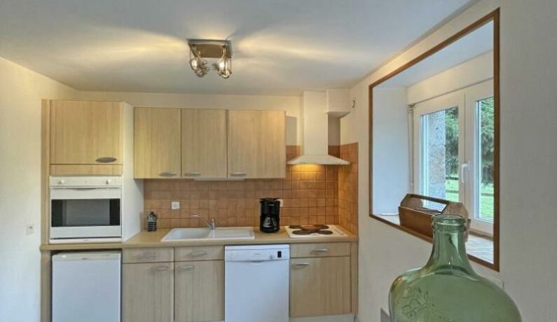 Ancienne grange indépendante. Rez-de-chaussée : séjour (TV avec TNT) cheminée décorative, coin-cuisine, salle d’eau, WC. Étage : 2 chambres (1 lits 2 personnes, 2 lit 1 personne), WC. Chauffage électrique. Terrain clos (environ 200 m2). Parking privatif à 20 m du gîte uniquement pour les véhicules lourds.