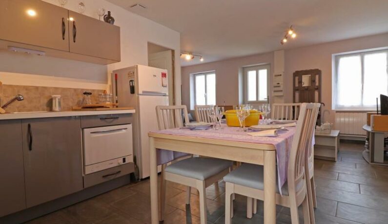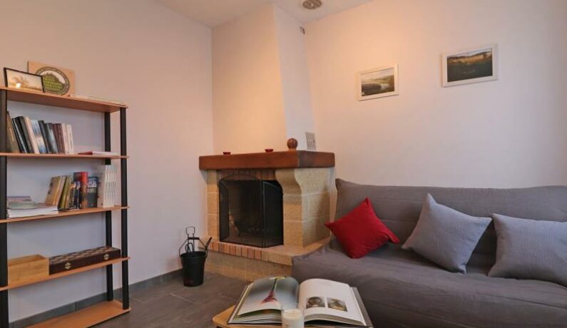 Maison indépendante de plain pied avec perron : séjour avec coin salon (cheminée avec bois fournis) et cuisine toute équipée, chambre (lit fait 2 personnes 160 x 200 cm séparable avec sur-matelas), chambre (2 lits faits 1 personne), salle d’eau, wc indépendant. Chauffage électrique inclus. Jardin clos 1000 m².
