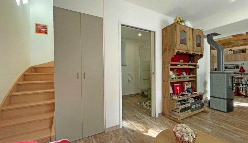 Maison entièrement restaurée sur 2 niveaux. Rez de chaussée : Grande pièce de vie avec cuisine, salle à manger et un salon avec un convertible BZ 2 places. Salle d’eau avec wc. Étage : Coin couchage mansardé ouvert en mezzanine avec deux lits double 140 x 190 cm Cour avec salon de jardin. Possibilité d’un garage pour les motos et vélos. Tarif spécial trois semaines Supplément de 10€/personne supplémentaire par nuit avec l’utilisation des couchages d’appoints convertobles.
