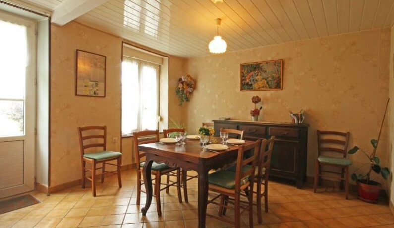 Maison de pays datant de 1885 indépendante. Rez de chaussée : Séjour (canapé-lit 2 personnes), cuisine, WC. Étage : 3 chambres (2 lits 1 personne superposés, 1 lit 2 personnes, 1 lit en 130 cm), salle d’eau avec WC. Chauffage électrique. Terrain 300 m², portique, bac à sable, terrain de pétanque, toboggan. Adresse Google Maps : https://maps.app.goo.gl/S6xec7RVfJriHYfj6