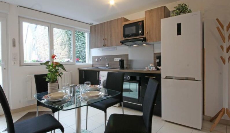 Maison de bourg de plain pied mitoyen à une boutique café lecture avec entrée indépendante : séjour avec coin cuisine et salon, 1 chambre (1 lit 2 personnes), salle d’eau, wc indépendant. Terrasse. Jardin non attenant de 150m². Draps et linge fournis. Accès buanderie pendant les ouvertures du café livres : 3 €/sèche linge. 60 € la nuit pour 2 personnes hors week-ends et vacances scolaires. Possibilité petits déjeuners. Jardin commun.