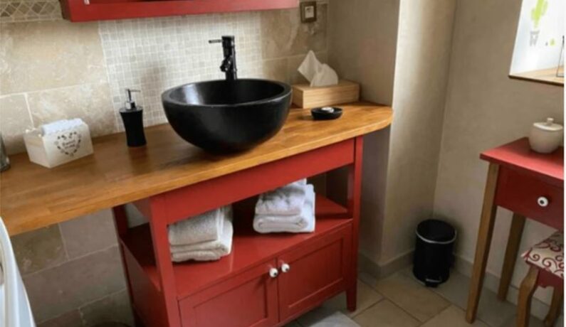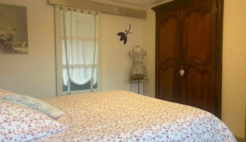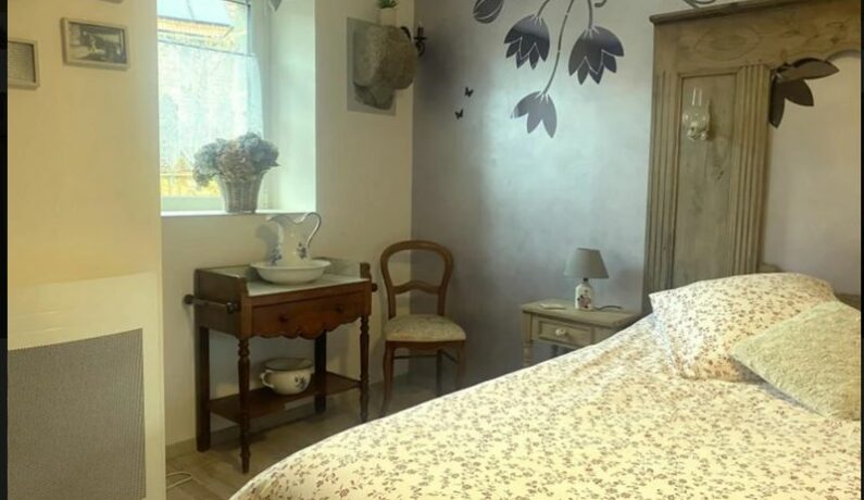 Maison de bourg dans une petite rue avec terrasse surélevée chambre (1 lit 2 personnes 160 cm, possibilité lit bébé), salle d’eau (douche à l’italienne) et wc indépendant. Local vélos ou motos avec buanderie au rez de chaussée (un supplément peut être demandé). Les draps et le linge de maison sont fournis . Possibilité de fournir des petits déjeuners sur demande.