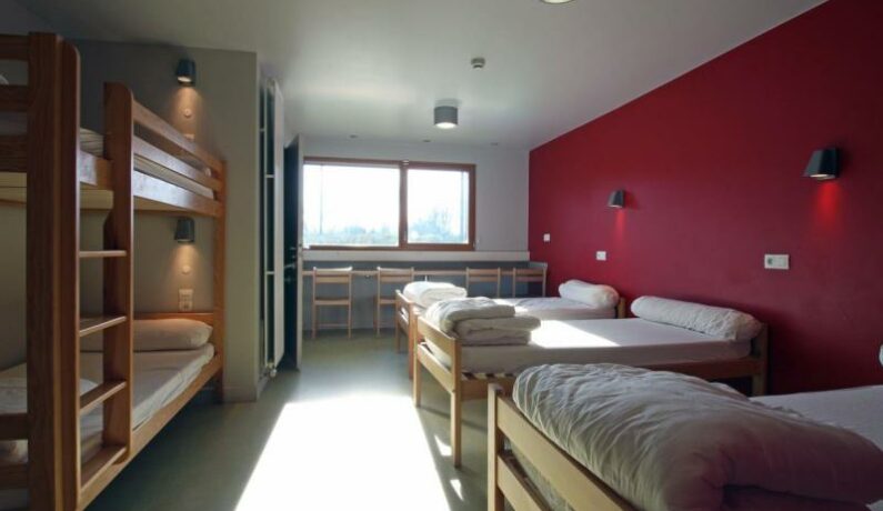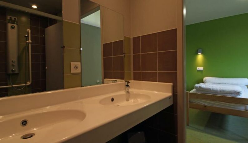 Construction neuve de plain pied mitoyenne avec un autre gite au niveau supérieur : 8 chambres accessibles aux personnes handicapées avec chacune 4 lits 1 personne dont 2 superposés, 1 salle d’eau (douche à l’italienne, double vasques) et wc séparé en suite. 1 chambre individuelle avec 1 lit 1 personne, salle d’eau avec wc. Salle de réception dans bâtiment annexe. Chauffage central (en supplément pour les groupes du 15 octobre au 15 mai). Parc arboré de 2 ha entièrement clos avec espace multisports.