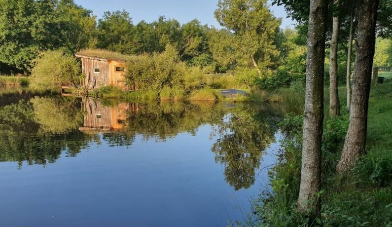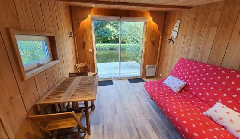 Une jolie petite cabane tout en bois, posée au milieu d’un étang au coeur de la campagne Normande. Idéale pour un week-end ressourçant, seul ou à deux, vous pourrez observer les animaux, écouter la nature, vous réveiller en observant les reflets de l’eau onduler sur les murs. Un ressourcement et une déconnexion garantis, avec un accès à pieds à travers champ, le long de la rivière, sur un domaine de 5 hectares.