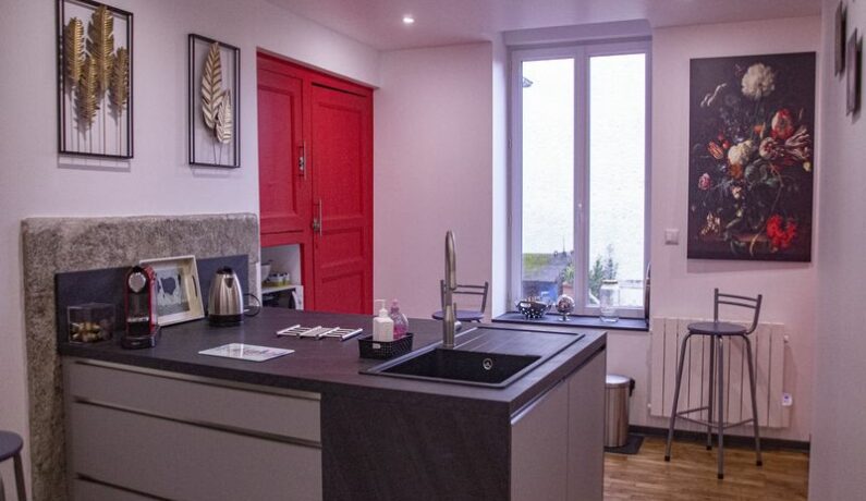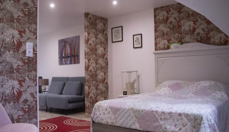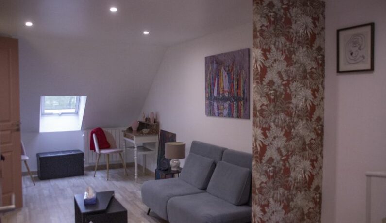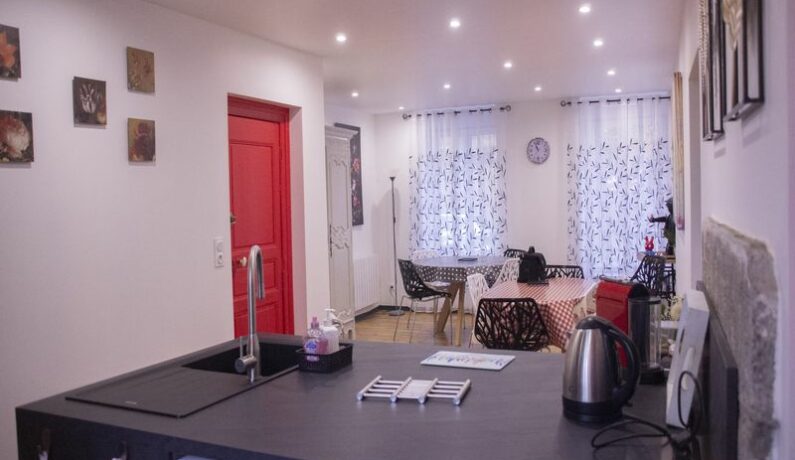 Rez de chaussée : Grande salle cuisine ouverte et équipée avec 2 tables séparées. Une cave avec jeux et espace pour mettre les vélos. 1er Etage : Une suite (jusqu’à 4 personnes) : chambre avec literie confortable, penderie, coin salon avec canapé convertible haut de gamme et TV, salle de bain avec douche WC. 2e étage : Une suite (2 personnes) : chambre avec literie confortable, coin salon avec canapé et TV (possibilité de le convertir pour enfants), penderie, salle de bain avec douche, WC séparés. Extérieur : Terrasse, salon de jardin, babyfoot, jeux de fléchettes.
