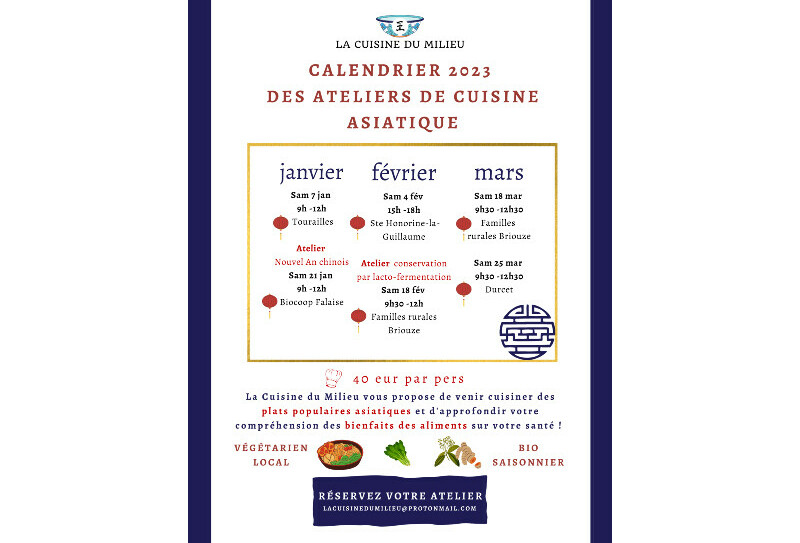 La Cuisine du Milieu vous propose de venir cuisiner des plats populaires asiatiques et d’approfondir votre compréhension des bienfaits des aliments sur votre santé !