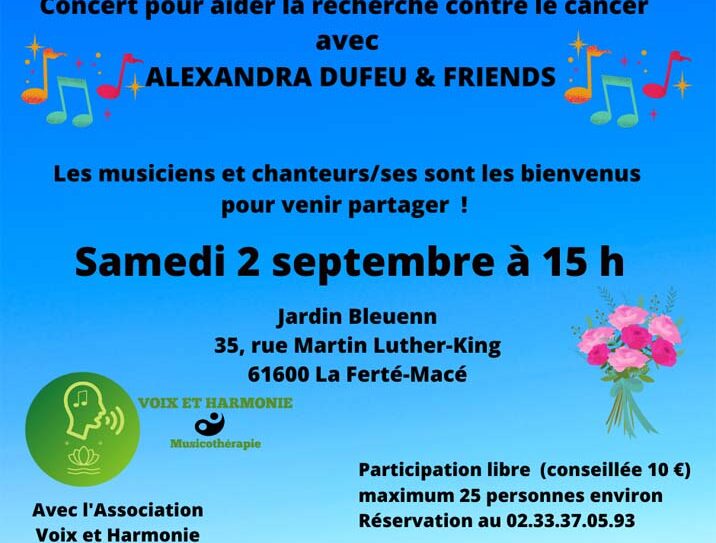 Concert d’Alexandra Dufeu & Friends, « jazz et compositions personnelles », au profit de la recherche contre le cancer avec l’Association Voix et Harmonie.