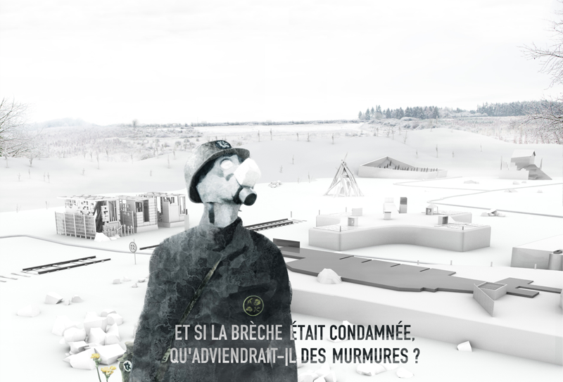 Les paysages de l’exposition « Et si la brèche était condamnée, qu’adviendrait-il des murmures ? » naissent d’explorations, de recherches et d’errances par delà le monde, au sein des friches et des zones à l’abandon de Normandie et d’ailleurs.