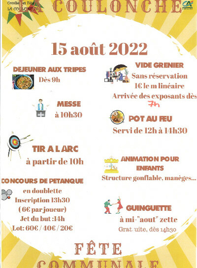 Fête du 15 août à la Coulonche, organisée par le Comité des Fêtes de la Commune.