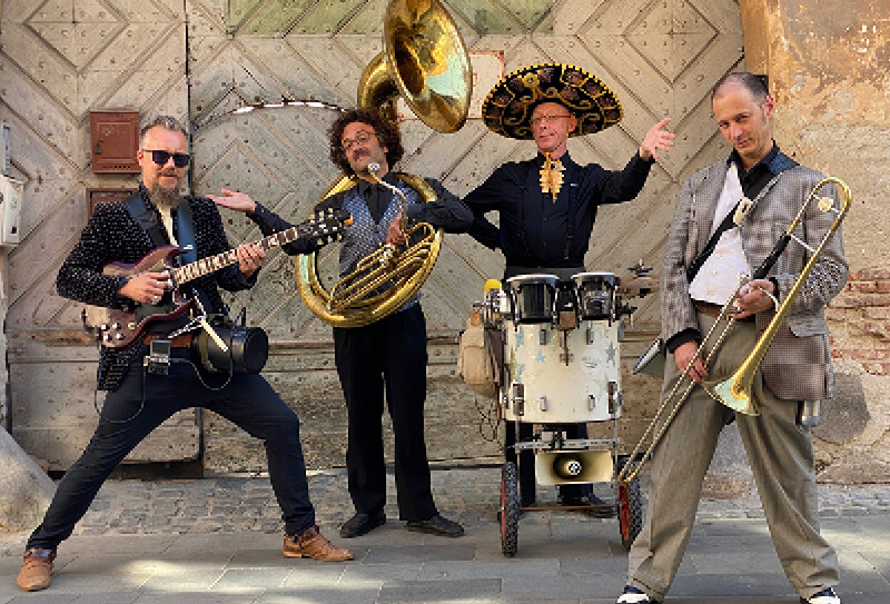 Un quatuor de rue pour un cocktail sonore jubilatoire qui délasse, déride et déchaîne les foules, transformant n’importe quel coin de rue en dancefloor survolté !