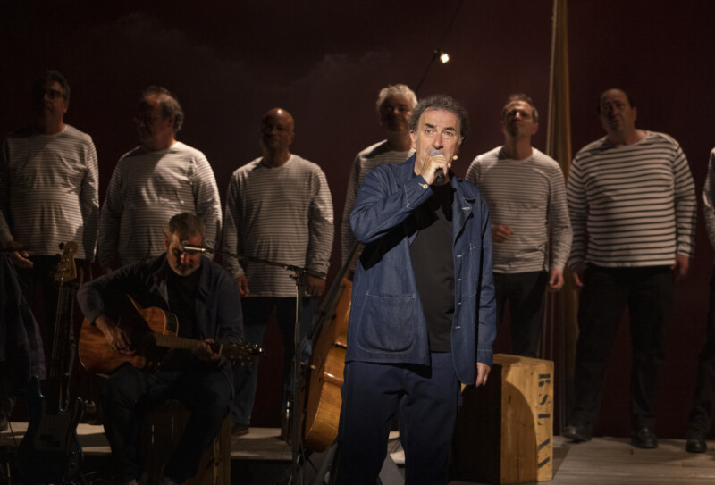 Après La fin du monde est pour dimanche et J’ai des doutes, l’ex-Deschiens François Morel part sur les traces de Yves-Marie Le Guilvinec, originaire de Trivagou dans les Côtes d’Armor. C’est lors d’un vide-grenier en Bretagne que le chanteur aux multiples talents tombe sur un vrai trésor : une vieille revue rongée par les embruns datant de 1894. À l’intérieur, douze chansons d’Yves-Marie Le Guilvinec reproduites et illustrées par l’auteur. Comme un signe de la main d’un naufragé vers son sauveur, il acheta l’ouvrage et se fit la promesse d’arracher Yves-Marie Le Guilvinec de l’oubli océanique où il était tombé. Entouré de son solide équipage, le normand originaire de Saint-Georges-des-Groseillers près de Flers, redonne vie aux poèmes tracés au calva et aux lettres imbibées de tafia de ce marin disparu au début du XXe siècle. Ensemble, Gérard Mordillat et François Morel s’attachent à compléter sa biographie, ils recousent les filets de pêche, recomposent avec Antoine Sahler les musiques disparues. Nos joyeux matelots prennent le large et à bras-le-corps ce portrait de fantôme, réhabilitent à contre-courant une poésie joyeuse et populaire, dans un hymne qui sent bon l’ivresse des marins, la fleur de sel et la liberté.
