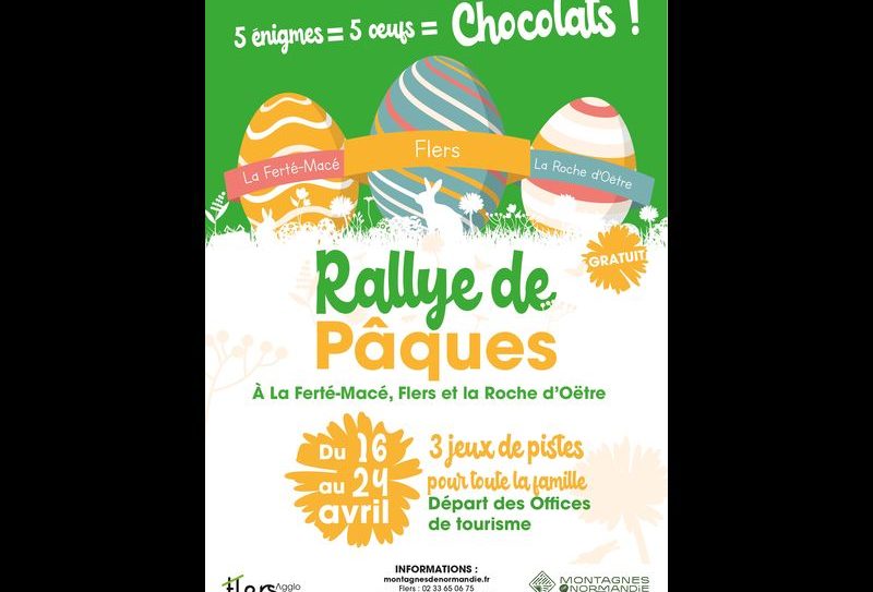 Pour la seconde année, Montagnes de Normandie Tourisme organise du 16 au 24 avril 2022 un rallye de Pâques à travers les villes de Flers, de La Ferté-Macé et sur le site de la Roche d’Oëtre.